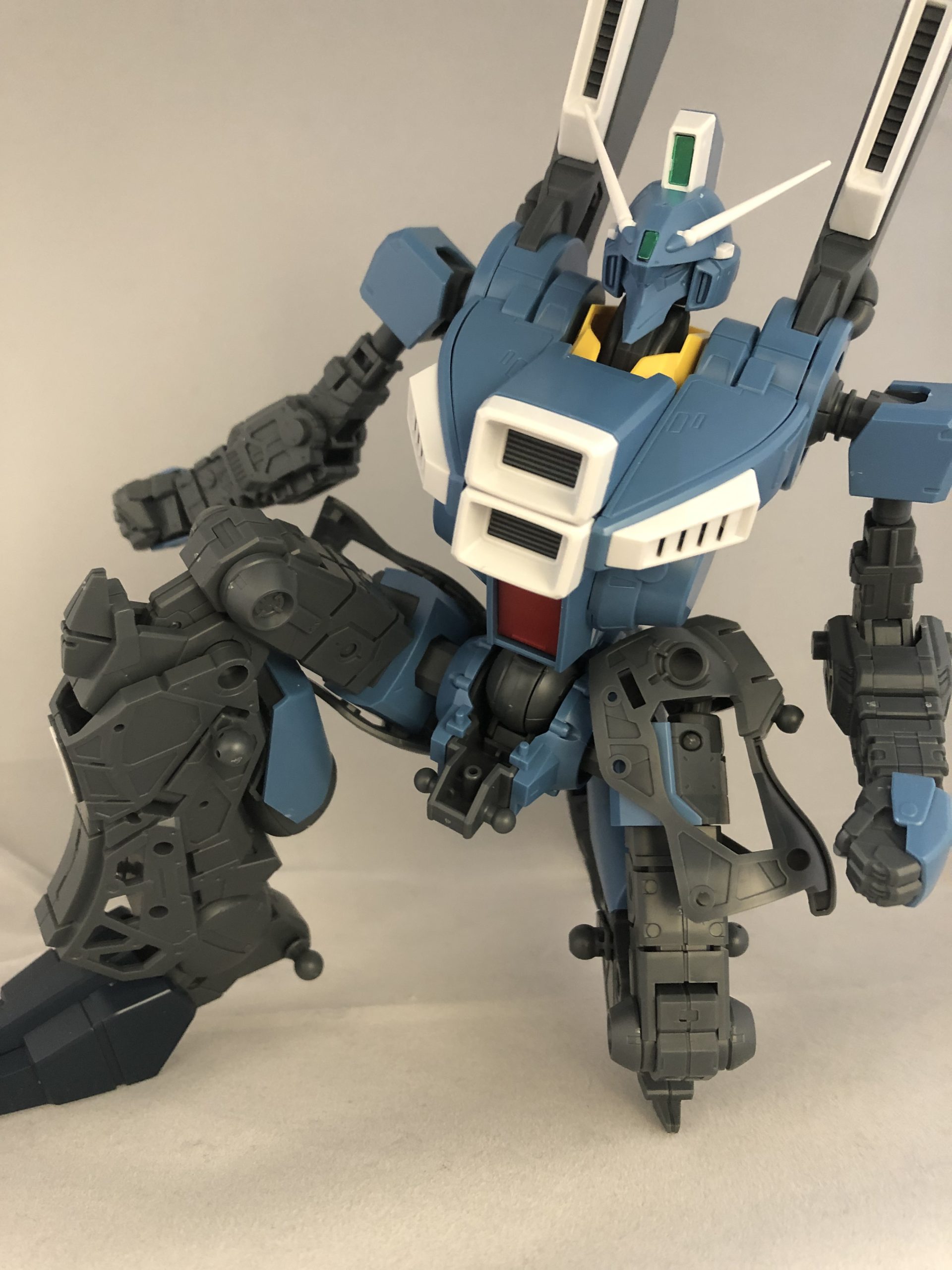 稼働範囲は、最近のMGなので、申し分ないのですが、パーツ同士が干渉し合い、なかなかポージングが難しいのが難点でしたね。