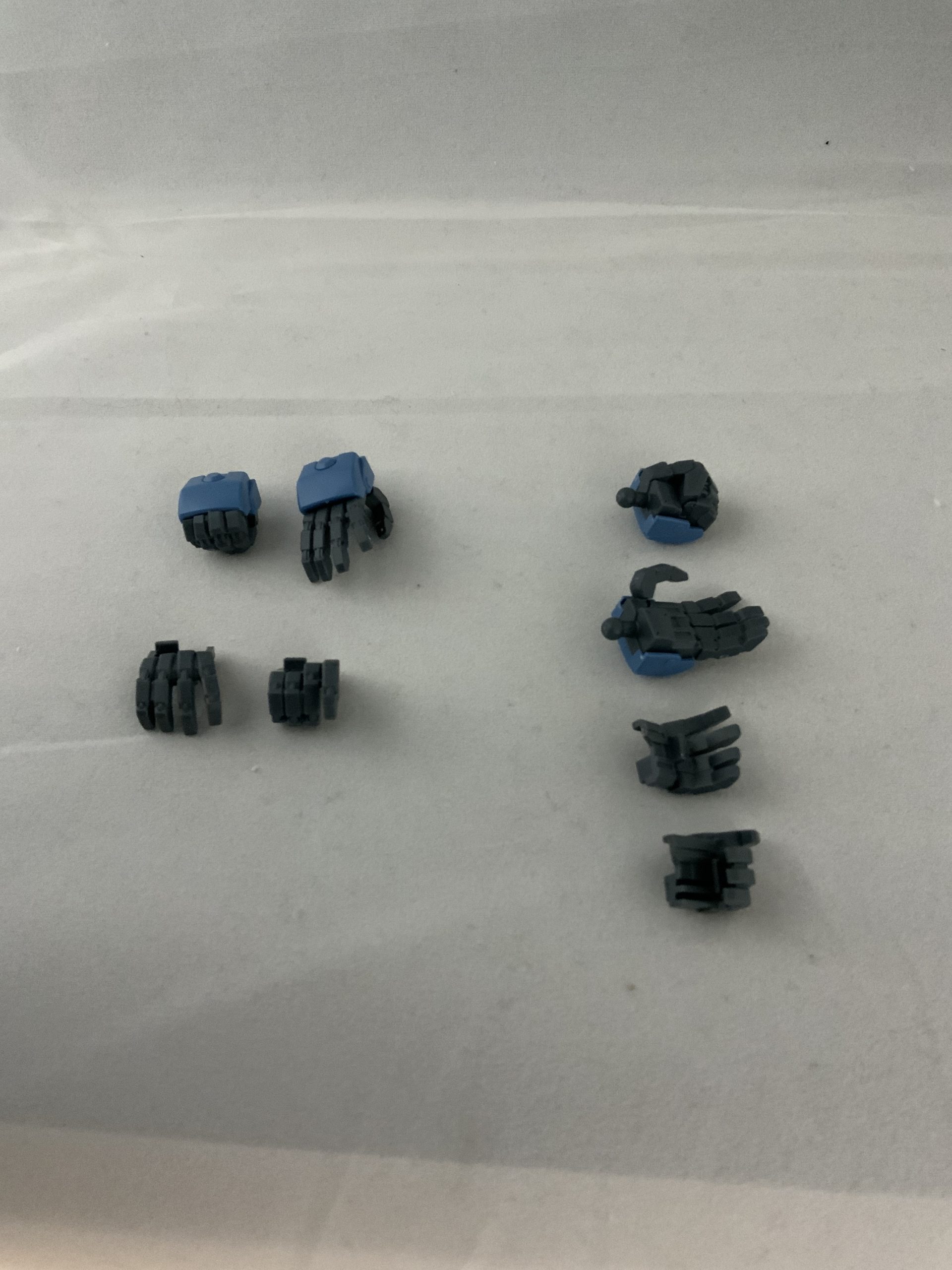 ハンドパーツは握り拳と平手と他に武器を持つパーツの3種類が左右それぞれ用意されています。武器を持つ際は最近の流れなのか武器をきちんとはめ込んで保持できるようになっているため、ポーズ中に武器がハンドパーツから外れることはないです。