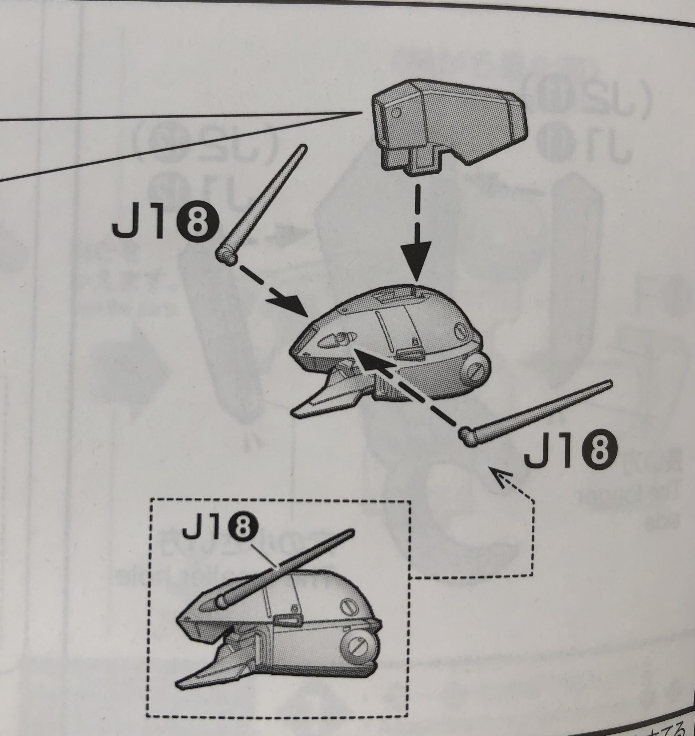 全部パーツを組み立てた後の余剰パーツにアンテナパーツが!。バンダイの良心を感じます。説明書の中のアンテナ取り付け部分ですが、これ、すごい気を遣う箇所だと個人的には思っています。