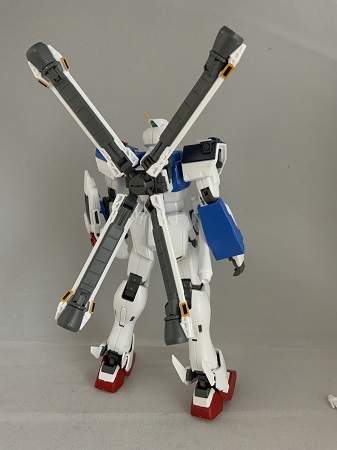 元は2006年に発売されたクロスボーンガンダムX1なので、最新と比較するとやや古臭い部分がいくつかあります。特にシールで色分けしている部分はMGらしからぬ出来でちょっと残念です(´Д⊂ヽ。もし、クロスボーンガンダムのキットが欲しいなら今なら、RG版をおススメします。
