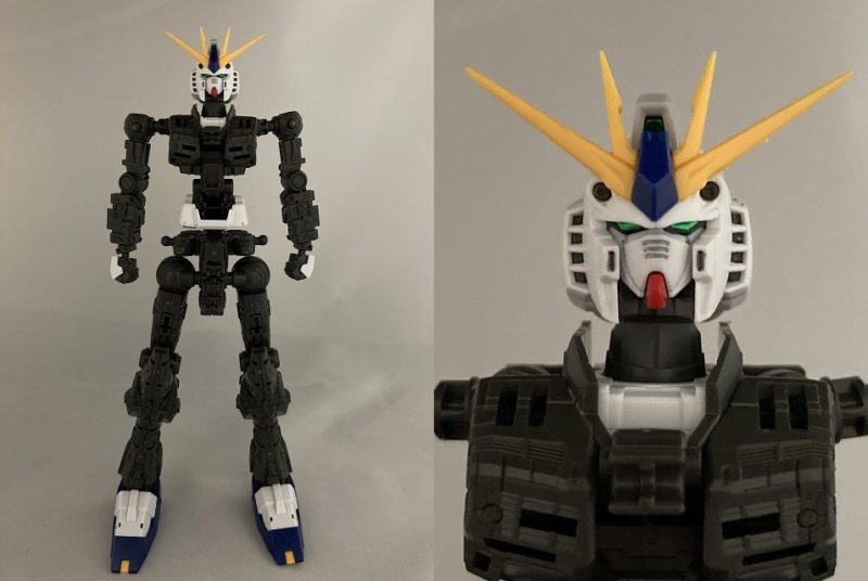 RG版νガンダムは小顔で現代っぽい。劇中はもっと頭部が大きかったイメージがある。