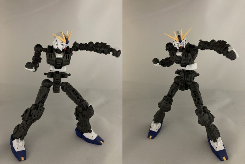 冒頭の格闘ポーズから外装を付けてみた。肩回りが本当によく可動するな~。やっぱRGをして「νガンダムは伊達じゃない」というキットであるな~。バンダイの熱量を感じた。