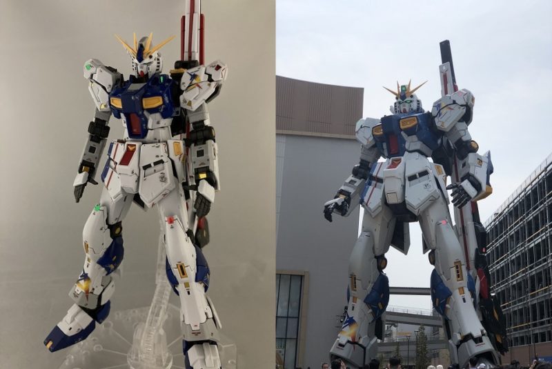 最後にららぽーと福岡にある実物大のνガンダムと今回作成したRG版νガンダムを対比させてみた。プラモ版の方が若干、小顔だなと印象を受ける以外ほぼ同じというか、どっちもスゲーな。次はノーマルのνガンダムかhi-νガンダムを組みたい!