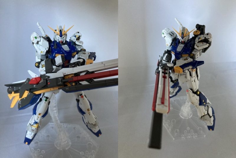 肩(正確にはバックパック)にマウントして連結部を調整することで発射ポーズが可能。ロングレンジ・フィンファンネルの角度調整は割と広範囲に可能。