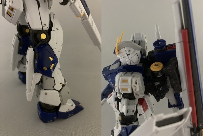 RGは内部フレームから再現されている。ここから外装パーツをはめていくのが楽しい。今回はRGの特徴であるアドバンスドMSジョイントがない。元のRG版νガンダムはフィンファンネルにアドバンスドMSジョイントを採用しており、このキットにはフィンファンネルはなくロングレンジ・フィンファンネルが付属しているためだ。