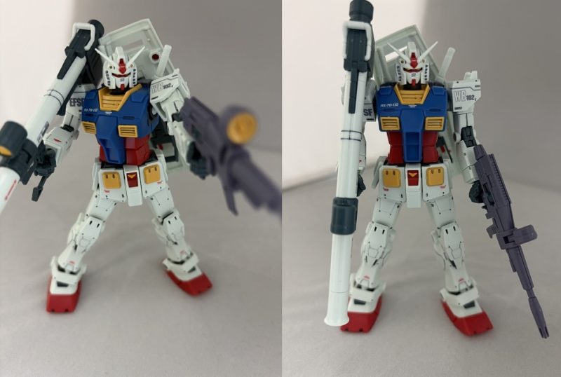 左手用にもバズーカやビームライフルを持つハンドパーツが付属しているので、バズーカとライフルの二刀流が可能。