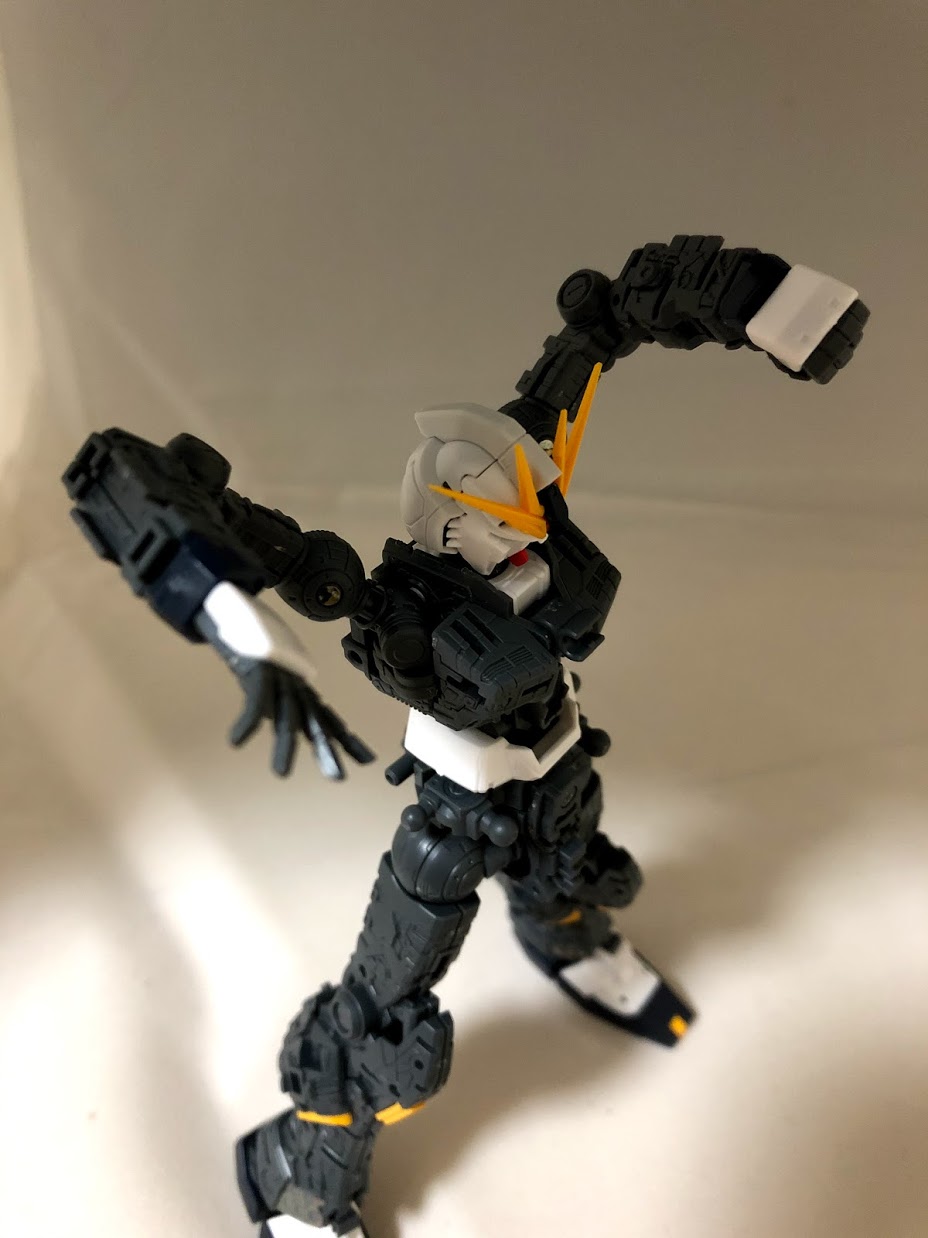 腕と肩の可動範囲もかなり広いです。このポーズは最終決戦のユニコーンガンダムを真似てます(;’∀’)。