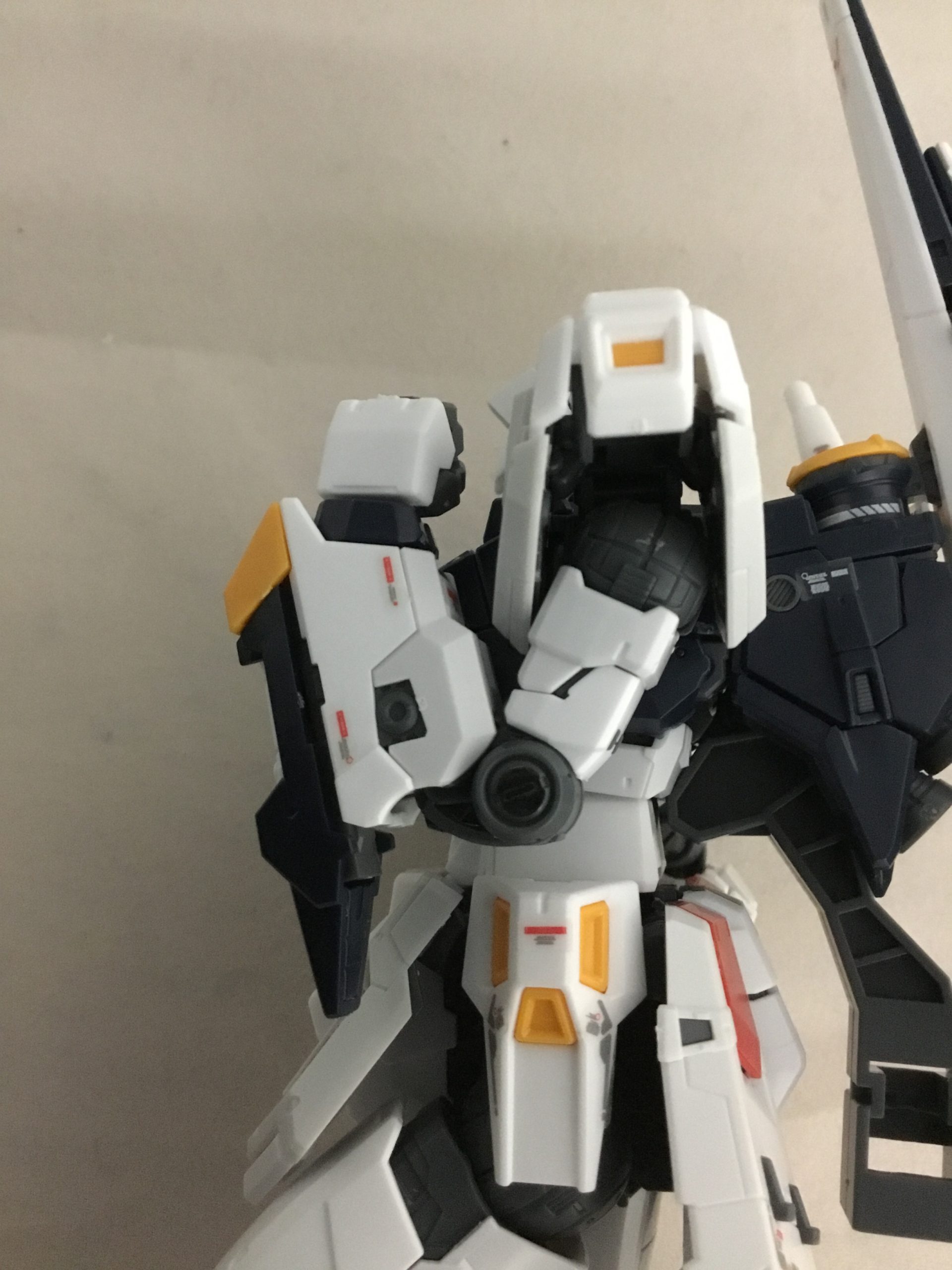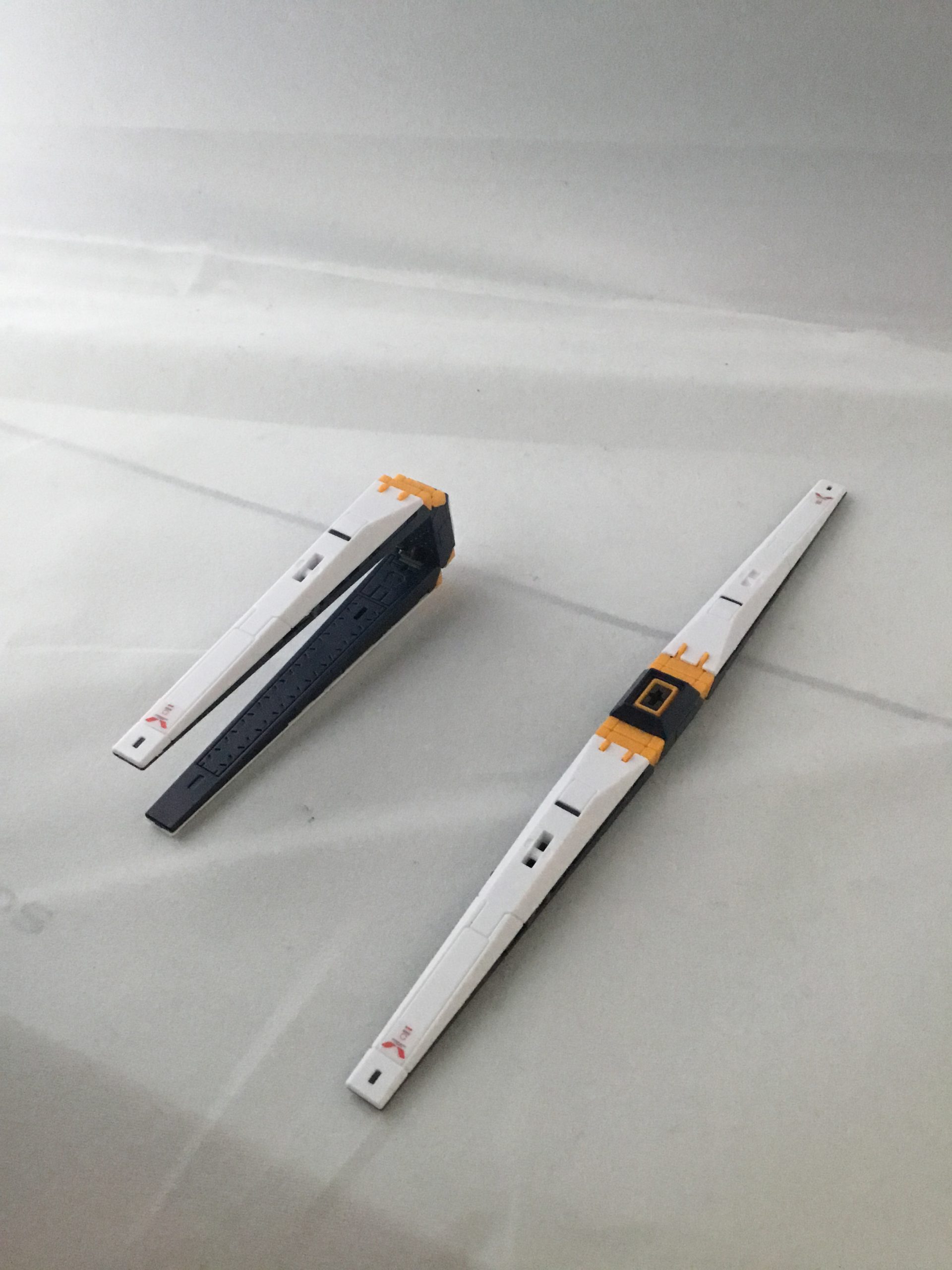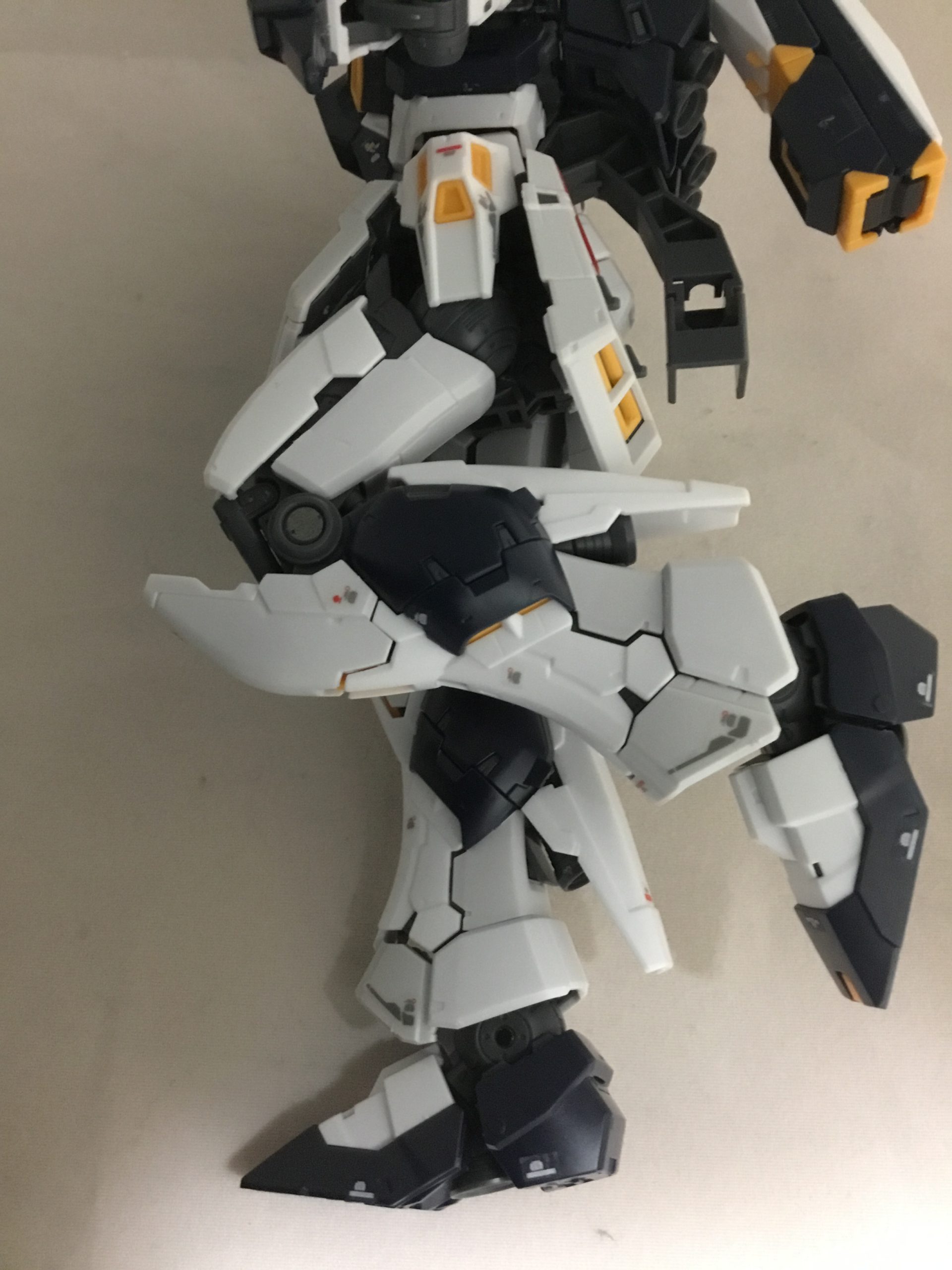 右半身のみの外装パーツを取り付け。白系パーツは若干灰色気味のパーツと白系パーツの2種類で表現されています。