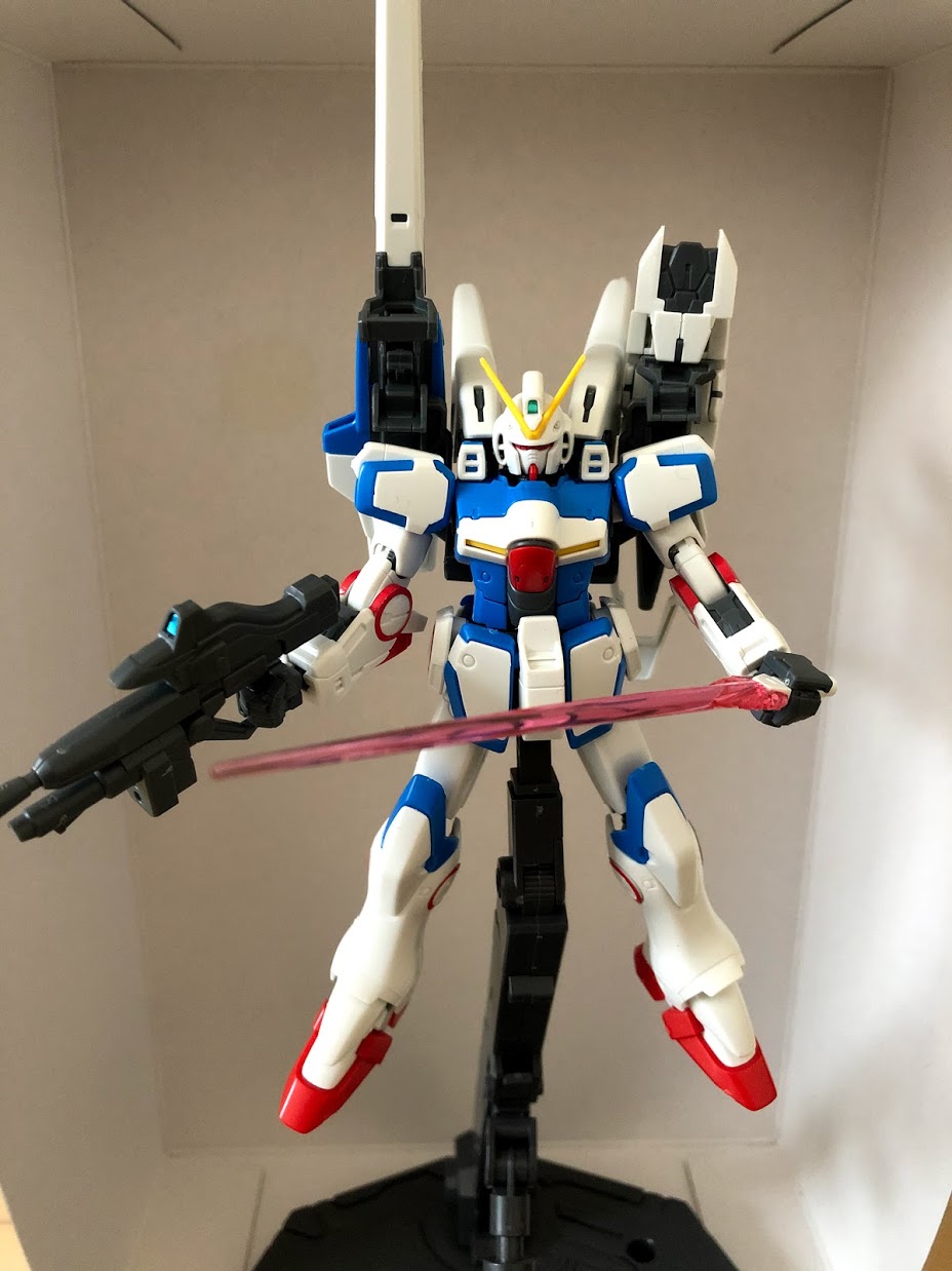 プレミアムバンダイ限定キットを初めて購入しましたが、一般販売のVガンダムから新規造形パーツが多くあることに加え、核となるVガンダム自身のパーツの色分けも細かくなっています。元は小説版のキットなのでマイナーなプラモデルですが、組んでみると、けっこうかっこいいMSでした。これだったら一般販売してもいいのではと思うのですが。