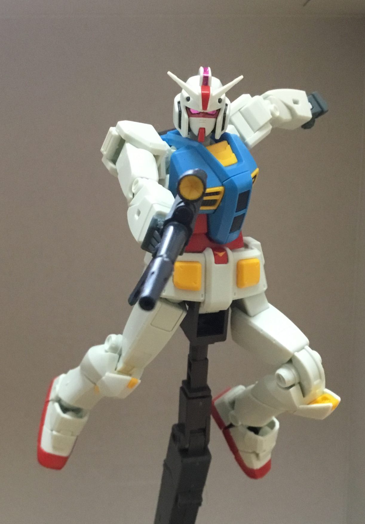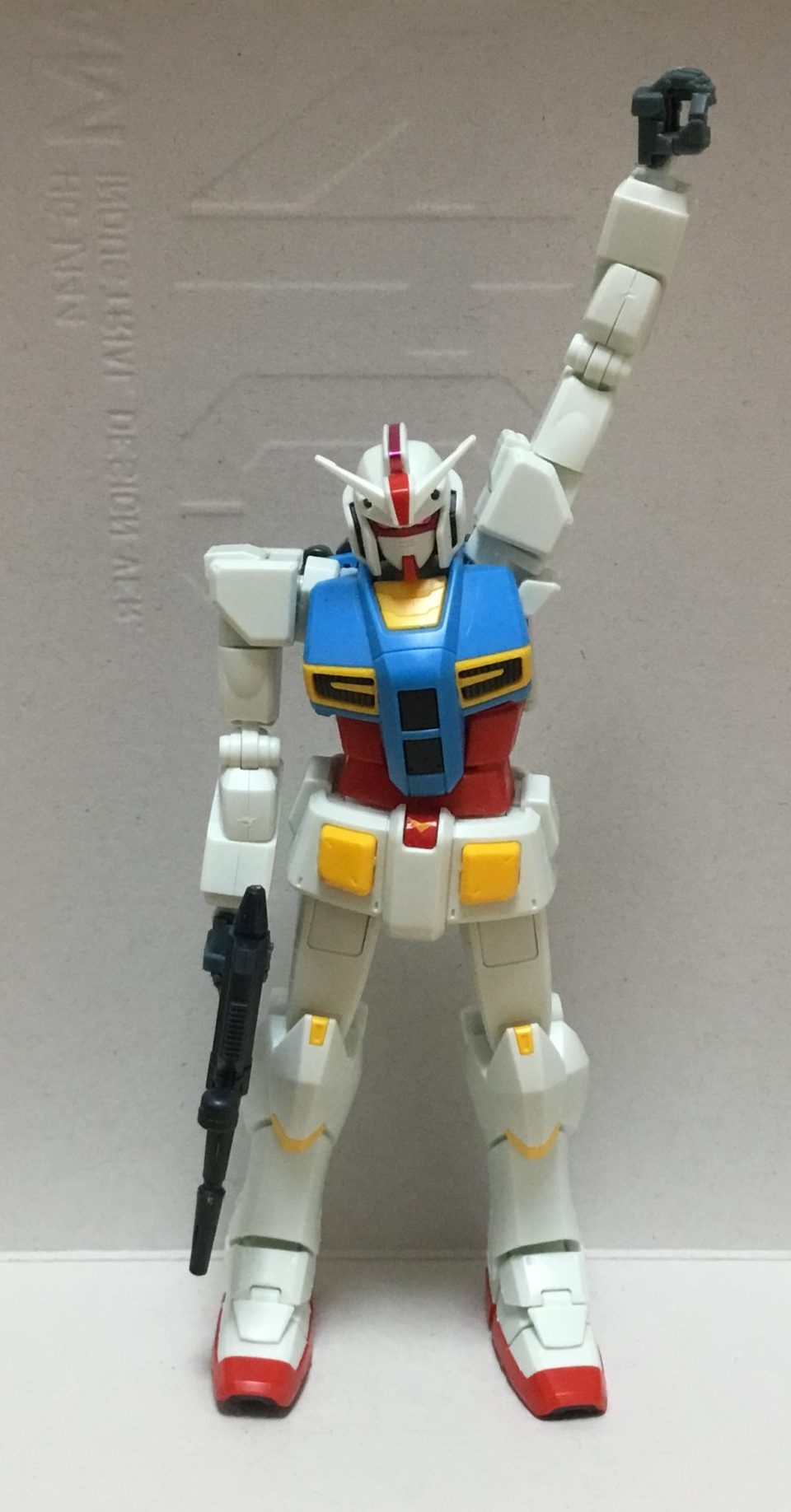 説明書の画像をいくつか貼り付けたのですが、こんなカッコいいポージングが出来るようです。自分のは素で組んだものなので、ここまではいけませんが、HGでもカッコよく仕上げることが可能です。