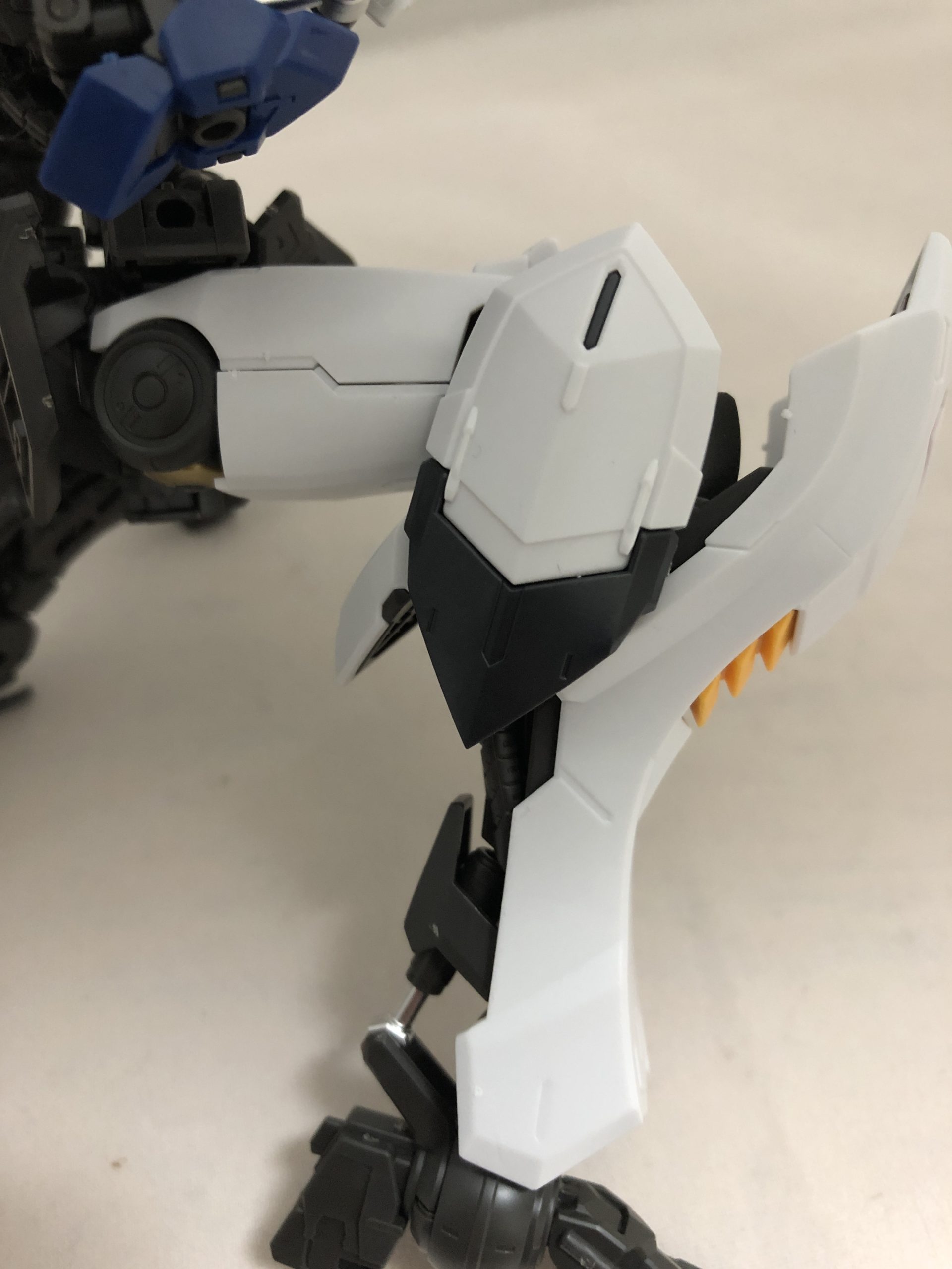 腰部分もきちんと色分けされており、再現性は高いです。これはバルバトスのモビルスーツとしての特徴でもあるのですが、全ての部分に内装パーツと外装パーツがあり、マスターグレードの特徴にぴったりのキットなのかなと思います。