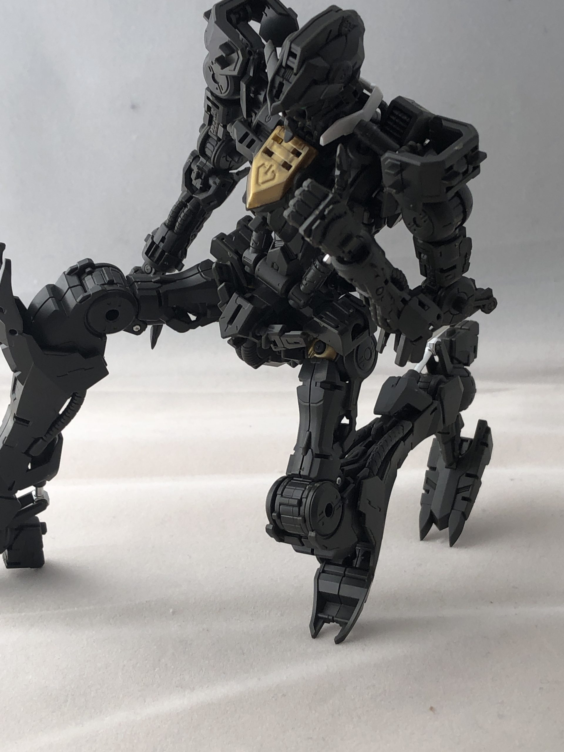 可動範囲が広いのでガシガシ動きますし、躍動感溢れるポージングなんかも十分可能です。本当に飾ってもOKですし、動かして遊んでもOKなキットとなっています。少し気になるのが、腰の部分が細いというか少し心もとないので、動かすときには注意が必要です。負荷がかかって破損しやすいのではないかと思います。