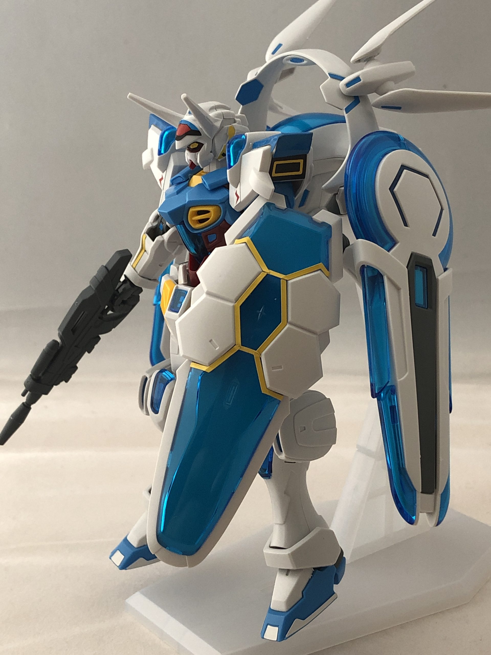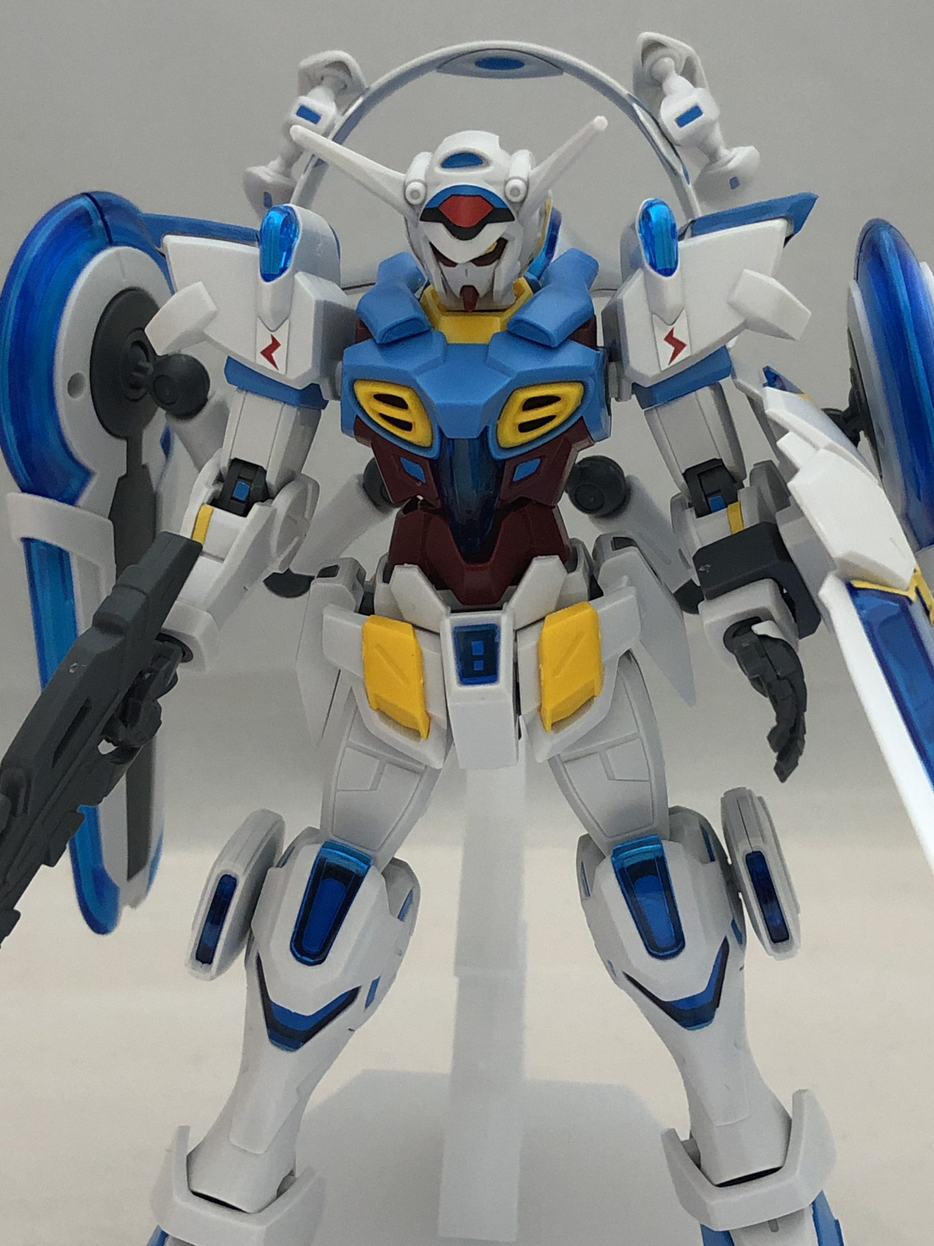 主人公機でもあるので組んだ後の満足度は高いのですが、バックパックのアーム部分の破損の心配やシール多めによる色分けなどがもう一つかなと思います。いずれ、MG版が発売されると思うので、そこで大きな進化というかパーツによる色分けで再現して決定版のようなガンダムG-セルフが発売されればいいかなと思います。